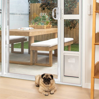 Mesh Patio Pet Door - Clear Weather Resistant Panels | 2025 & 2021 release - We don't ship to APO, FPO, DPO for any products.